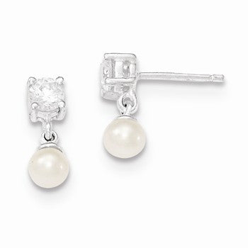 Sterling Silver Fresh Water Pearl with 4mm CZ Post Earrings