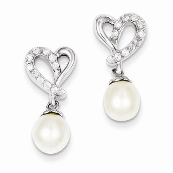 Sterling Silver Freshwater Cultured Pearl CZ Earrings
