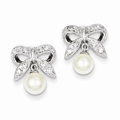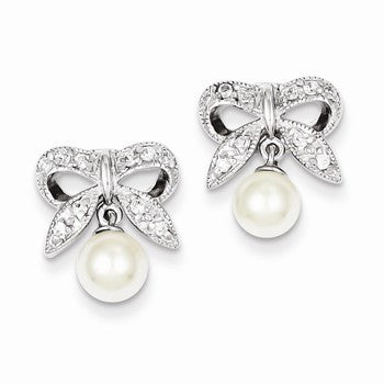 Sterling Silver Freshwater Cultured Pearl CZ Post Earrings