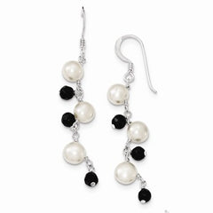 Sterling Silver Freshwater Cultured White Button Pearl/Crystal Earrings