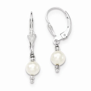Sterling Silver FWC Pearl with Bead Leverback Drop Earrings