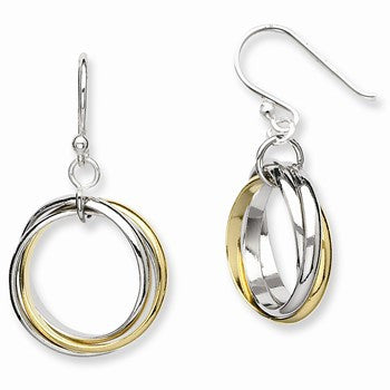 Sterling Silver Gold-Plated Triple Circle Dangle Earrings