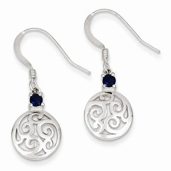 Sterling Silver Iolite Round Polished Filigree Dangle Earrings