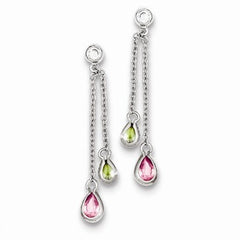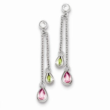 Sterling Silver Multicolor CZ Dangle Post Earrings