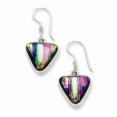 Sterling Silver Multicolor Dichroic Glass Triangle Shaped Dangle Earrings