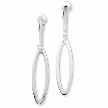 Sterling Silver Non-Pierced Oval Dangle Clip Earrings