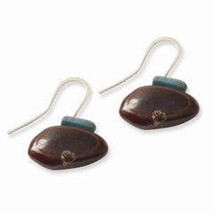 Sterling Silver Parota Seed Turquoise Chip Simple Earrings