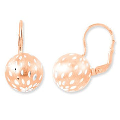 Sterling Silver Pink Rhodium Diamond-cut Ball Dangle Earrings
