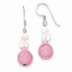 Sterling Silver Pink White Crystal/ /Mother of Pearl Dangle Earrings