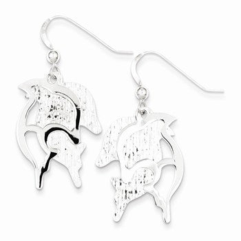 Sterling Silver Polished and Textured Dolphin Dangle Earrings