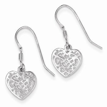 Sterling Silver Polished Filigree Heart Dangle Earrings