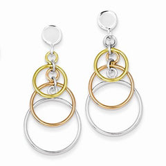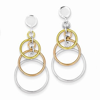Sterling Silver Polished Flash Gold Plated Circle Dangle Post Earrings