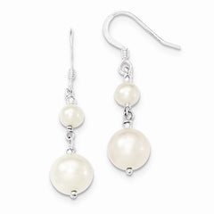 Sterling Silver Polished Fresh Water Pearl Dangle Earrings