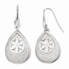 Sterling Silver Polished Glitter Infused Dangle Shepherd Hook Earrings