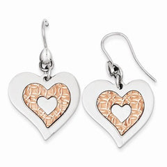 Sterling Silver Polished Heart Rose Gold-plated Heart Dangle Earrings