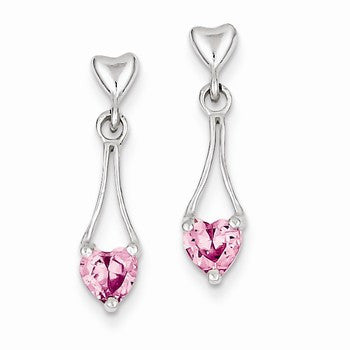 Sterling Silver Polished Pink CZ Heart Post Dangle Earrings