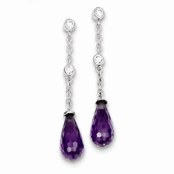 Sterling Silver Purple CZ Dangle Earrings