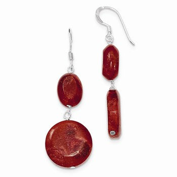 Sterling Silver Red Coral Dangle Earrings