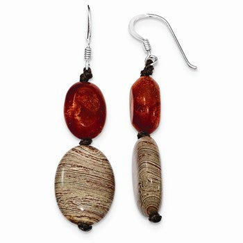 Sterling Silver Red Reconstructed Stone Red Zebra Earrings