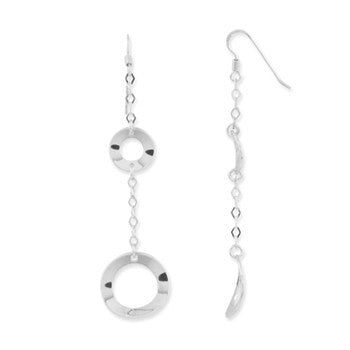 Sterling Silver Rhod-plated Polished Circle Dangle Earrings