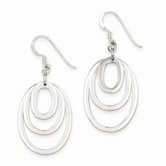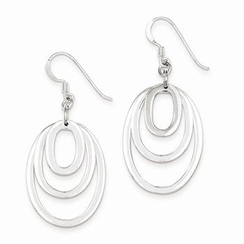 Sterling Silver Rhod-plated Triple Oval Dangle Earrings