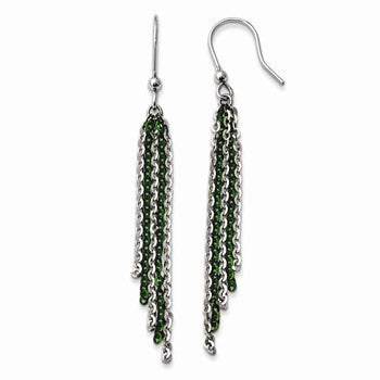 Sterling Silver Rhodium Green Plated Shepherd Hook Earrings