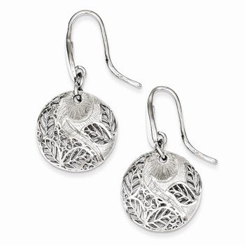Sterling Silver Rhodium Plated Circle Leaves Dangle Earrings