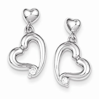 Sterling Silver Rhodium Plated CZ Heart Post Earrings