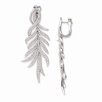 Sterling Silver Rhodium Plated CZ Hinged Earring