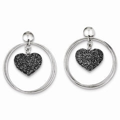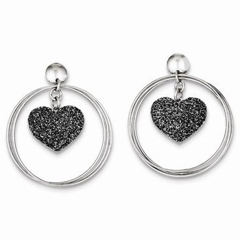 Sterling Silver Rhodium Plated Glitter Enamel Heart Post Earrings