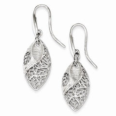 Sterling Silver Rhodium Plated Oval Leaf Dangle Earrings