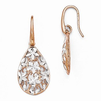 Sterling Silver Rose Gold-toned Polished Textured Earrings