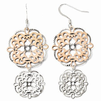 Sterling Silver Rose-tone 18k Flash Plated Dangle Earrings