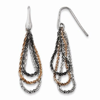 Sterling Silver Ruthenium Pink Plated Dangle Earrings