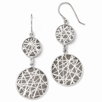 Sterling Silver Ruthenium-plated Laser Design Shepherd Hook Earrings