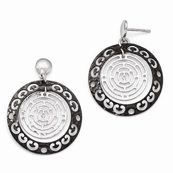 Sterling Silver Ruthenium-plated Polished Textured Earrings