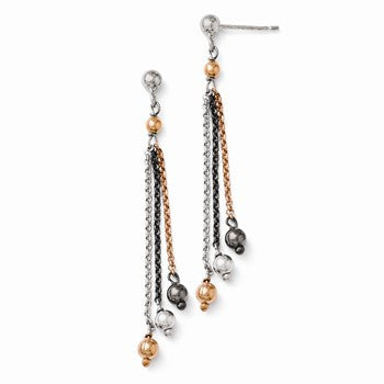 Sterling Silver Ruthenium/Rose Plate Diamond-cut Beaded Post Earrings