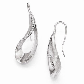 Sterling Silver Scratch Finish CZ Shepherd Hook Earrings
