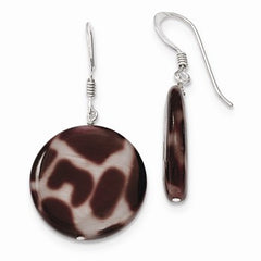 Sterling Silver Small Mother of Pearl Brown and Cream Disc Earrings