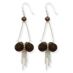 Sterling Silver Smokey Quartz/Cultured Golden Pearl Earrings