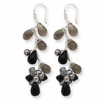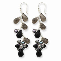 Sterling Silver Smoky Jet Crystal/Freshwater CulturedPeacock Pearl Earrings