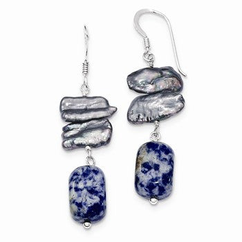Sterling Silver Sodalite Grey FW Cult. Pearl Earrings