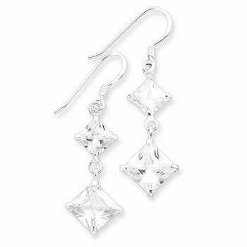 Sterling Silver Square Clear CZ Dangle Earrings