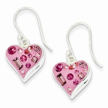 Sterling Silver Stellux Crystal Accented Pink Heart Dangle Earrings