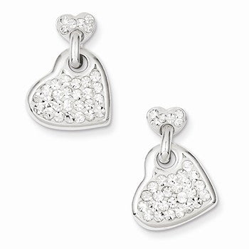 Sterling Silver Stellux Crystal Dangle Post Heart Earrings