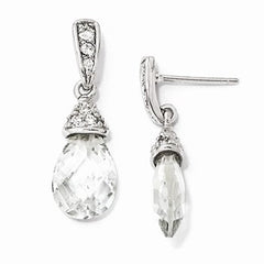 Sterling Silver Teardrop CZ Dangle Post Earrings