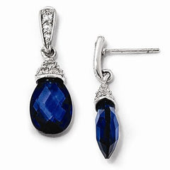 Sterling Silver Teardrop Synthetic Dark Blue Spinel CZ Dangle Post Earrings