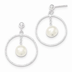 Sterling Silver Textured Fresh Water Pearl Post Dangle Earrings