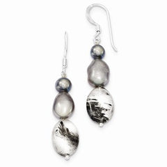 Sterling Silver Tourmalinated Quartz Grey Freshwater CulturedPearl Earrings