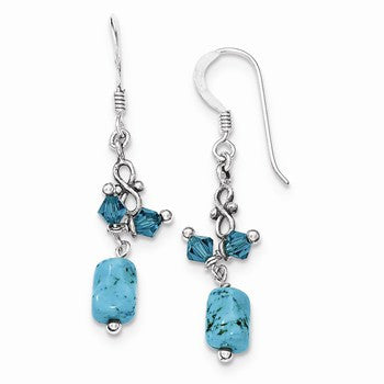 Sterling Silver Turquoise Blue Crystal Antiqued Earrings